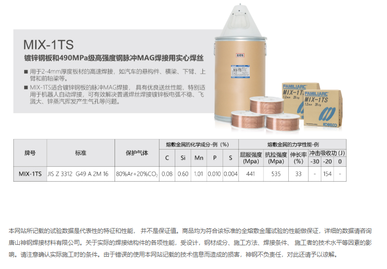 MIX-1TS 鍍鋅鋼板和490MPa級(jí)高強(qiáng)度鋼脈沖MAG焊接用實(shí)心焊絲